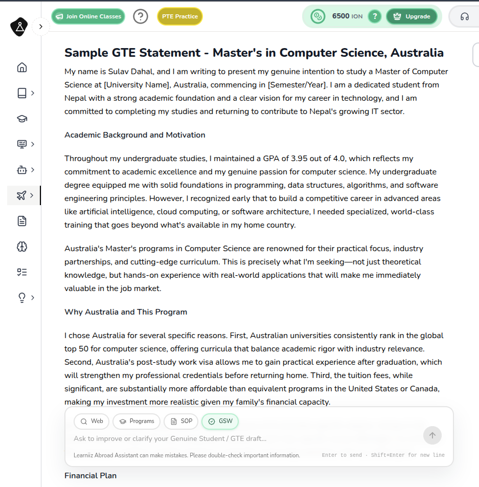 Genuine student statement writer. Visa requirements for your pathway. Document preparation assistance. AI monitoring for deadlines and updates.