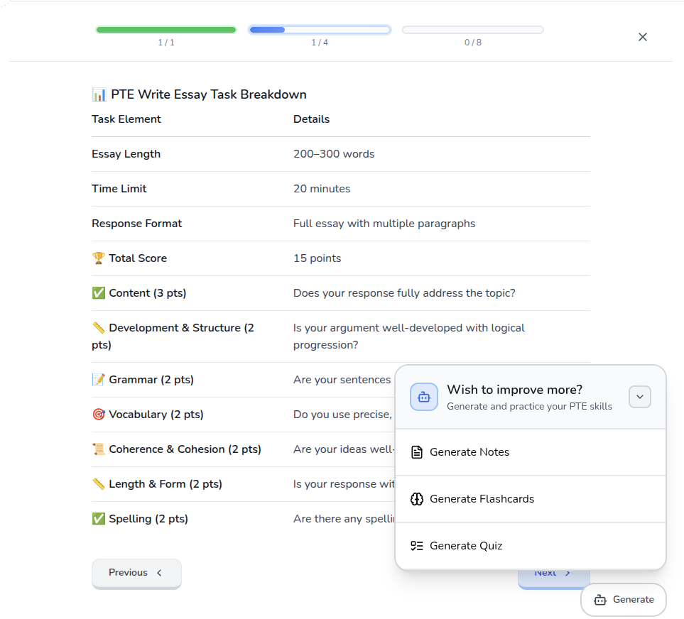 Get the score you need with AI that matches real exam scoring. Full mock tests show exactly where you stand. 1000+ practice questions for PTE, IELTS, NAATI, SAT, GRE through engaging content, gamified challenges, and AI coaches. Build your score. Learn how to learn. Prep that works for the exam and life abroad