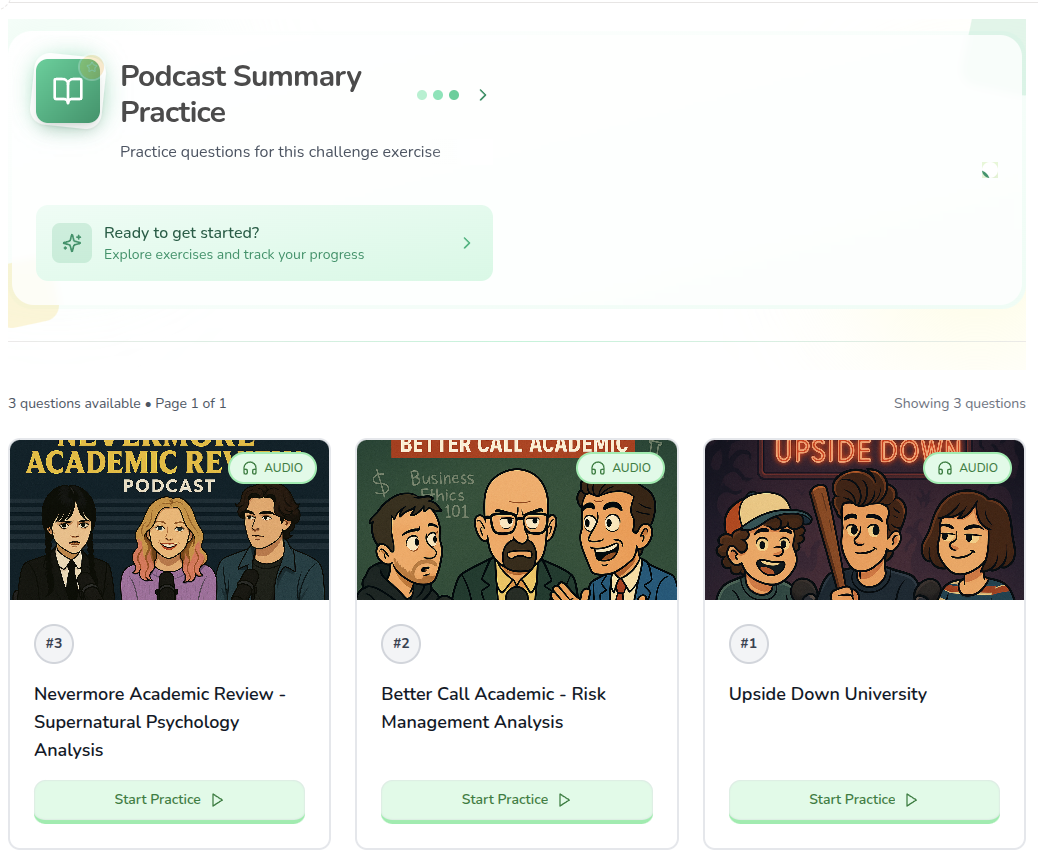 AI scoring that matches real exam algorithms. Full mock tests, instant feedback, detailed analytics. Practice 1000+ questions through shows you love, gamified challenges, and interactive exercises. Build your score while learning how to learn—skills that last beyond any exam.