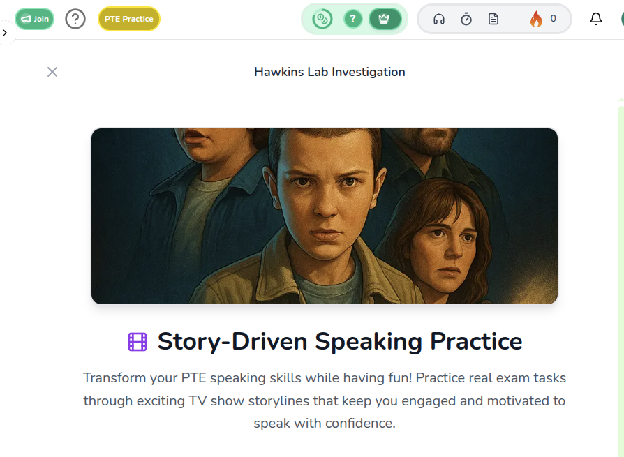 Crush PTE, IELTS, NAATI, SAT, GRE exam prep with AI scoring that mirrors real exams. Full mock tests, instant feedback, detailed analytics. Practice 1000+ questions through your favorite shows, gamified challenges, and interactive exercises—prep that improves your score AND teaches you how to learn—skills you'll use for life abroad.